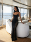 Keep it timeless in the Glow Dress—a sleek black slip cut with a sultry slit and minimalist sophistication.