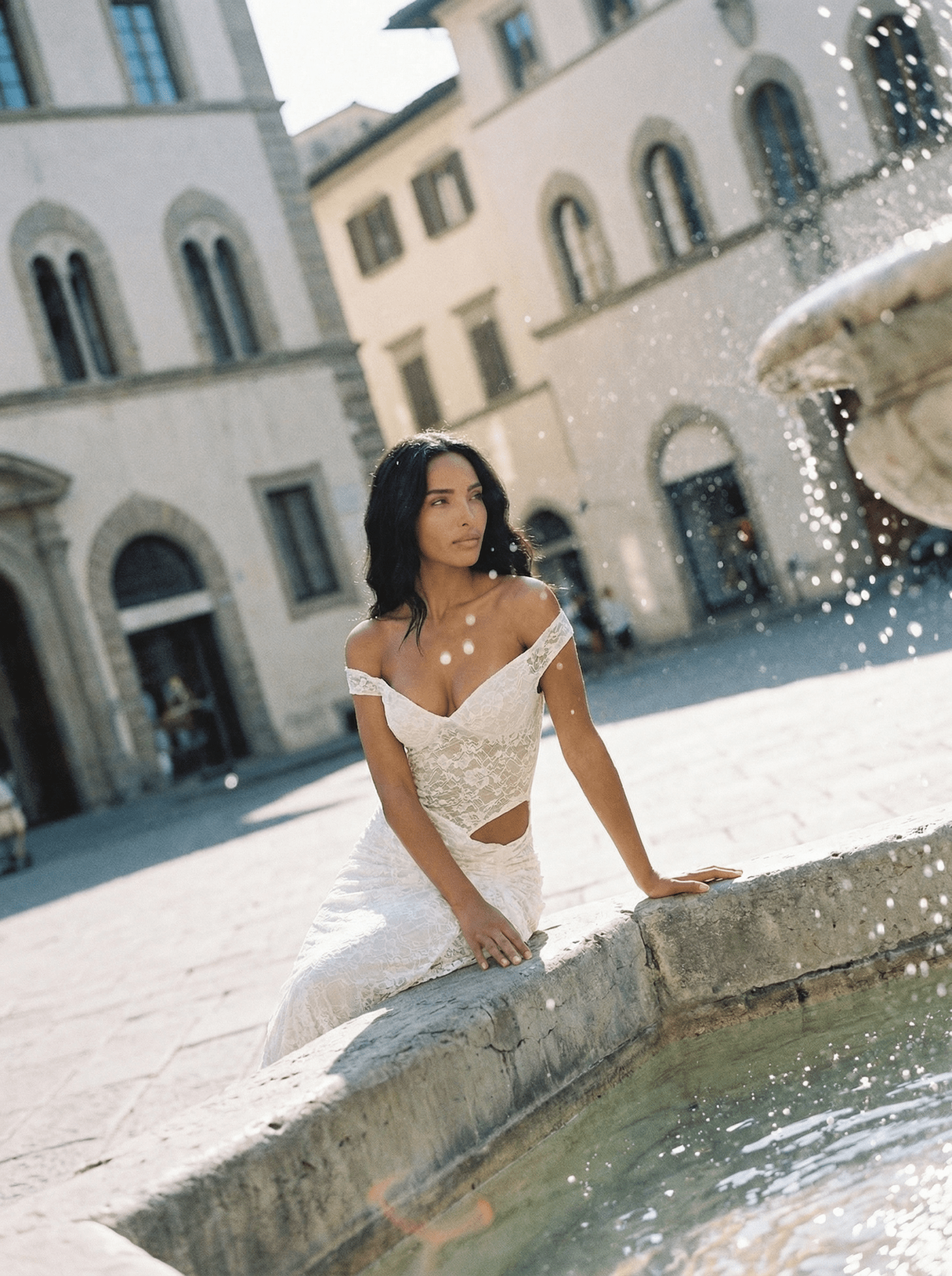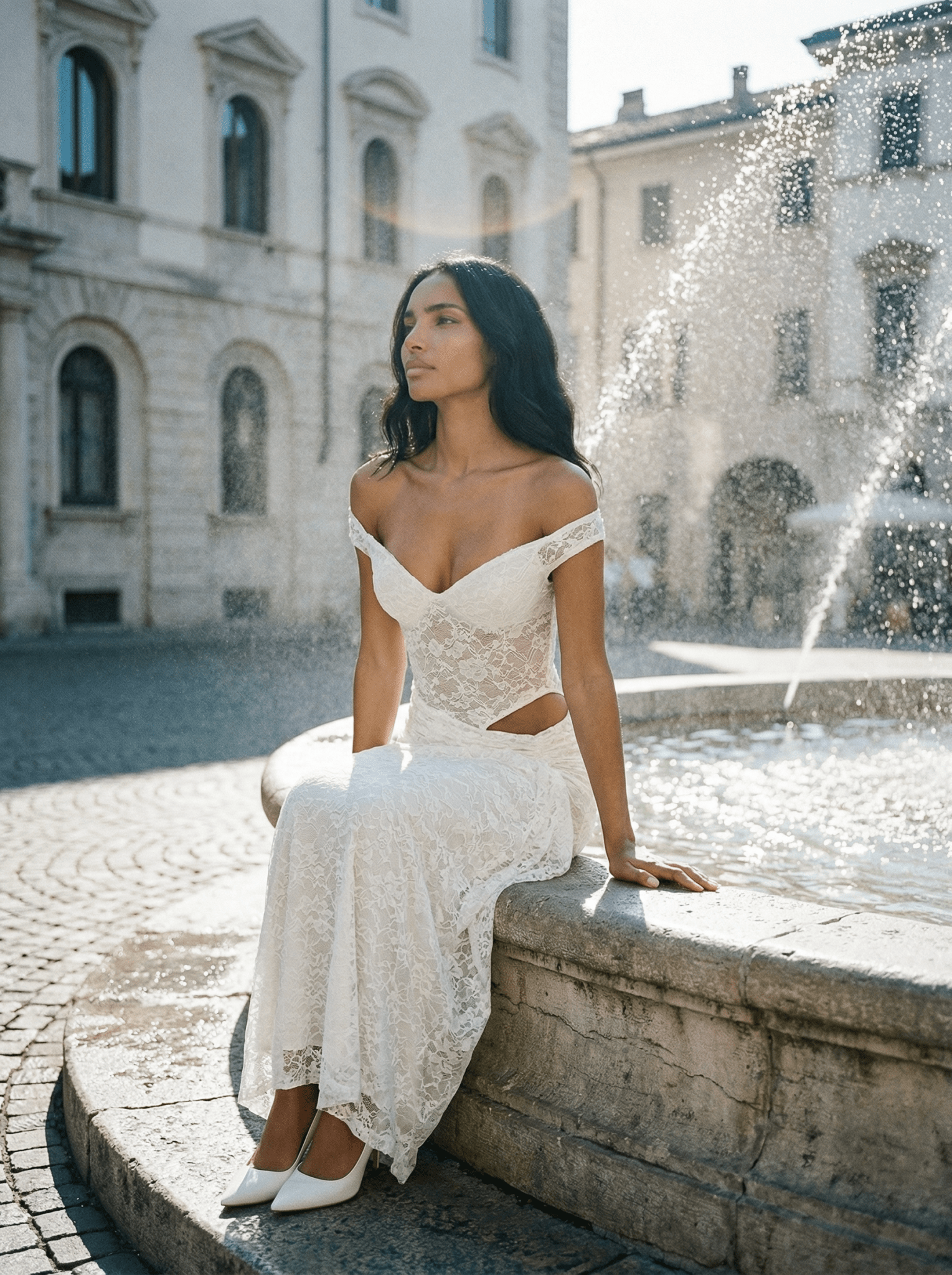 Warm, seductive, and effortlessly refined, the Café Noir Lace Dress is designed to captivate from golden hour through to moonlit evenings. Crafted in rich chocolate-toned lace, this off-shoulder silhouette exudes understated luxury with a distinctly European allure.