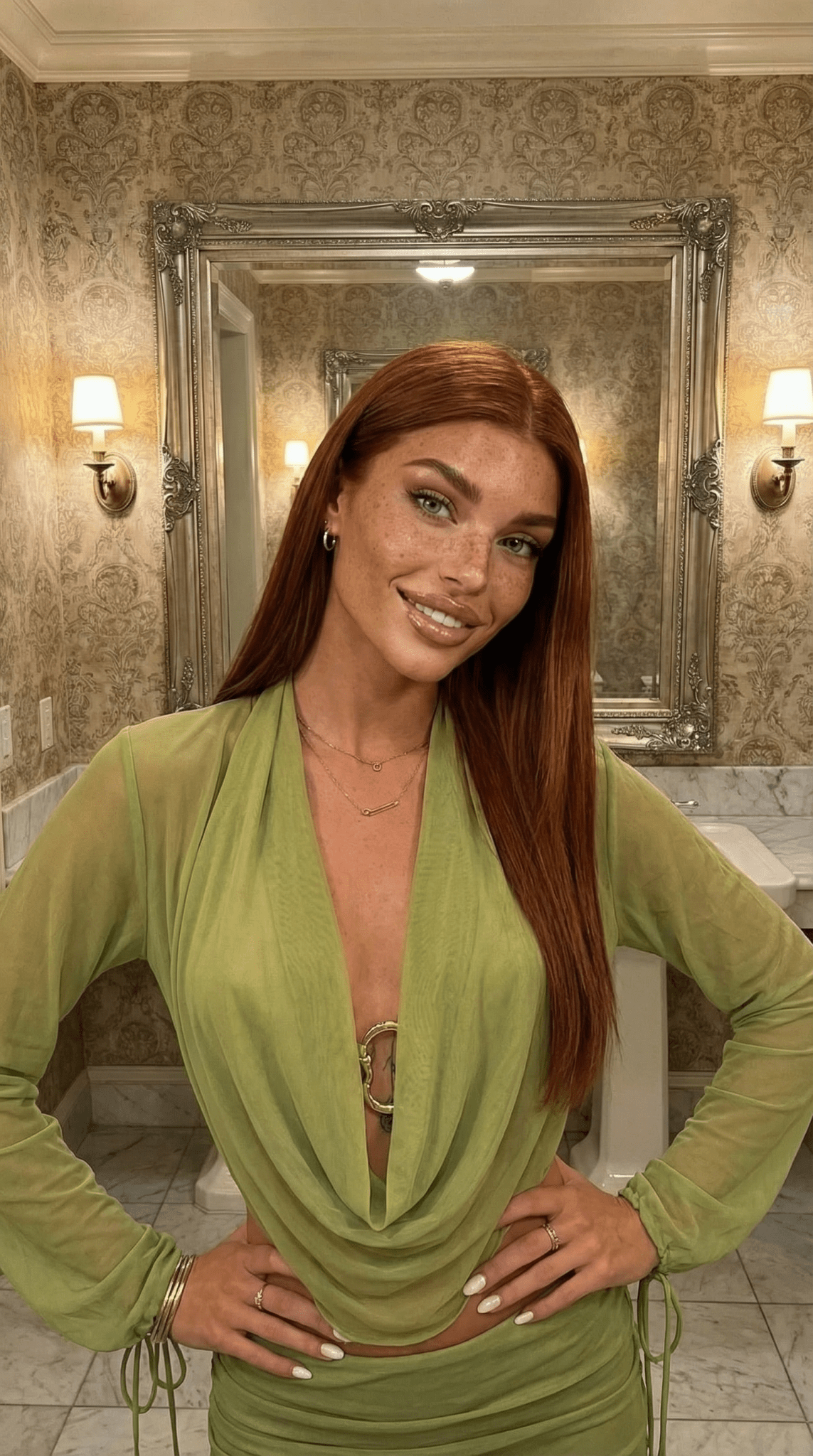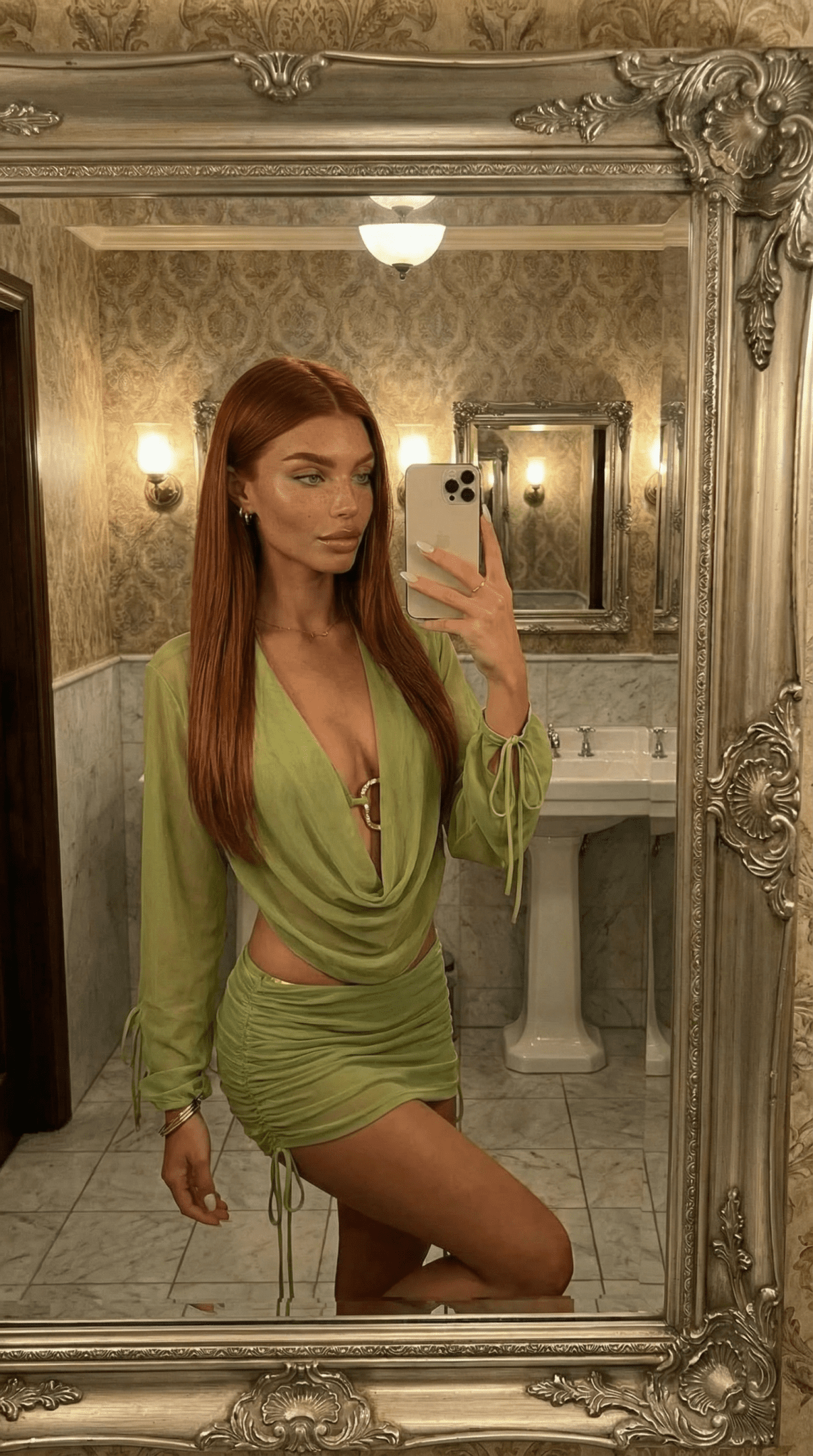Olive Muse is designed to feel intimate yet striking — a statement set that moves seamlessly from mirror selfies to midnight cocktails.